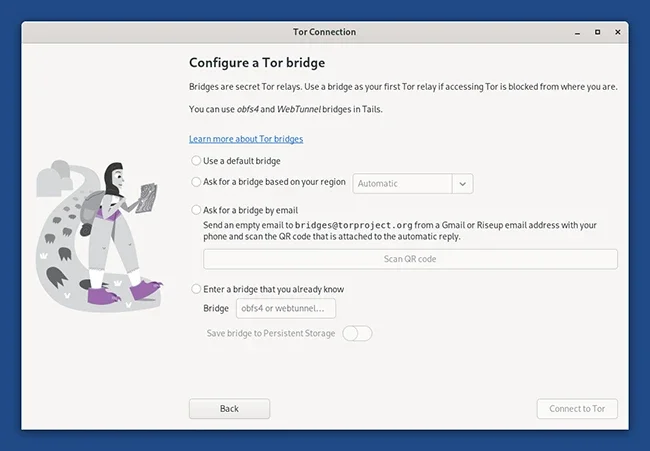 Эта функция закрывает давний пробел в возможностях Tails по обходу цензуры. Пользователи, которые предпочитают действовать самостоятельно, также могут выбрать опцию прямого запроса региональных мостов прямо с экрана помощника по подключению.