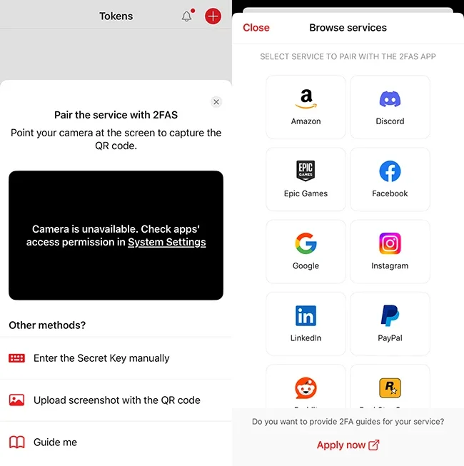 После загрузки приложения из App Store пользователи могут начать добавлять аккаунты, которые хотят защитить дополнительным уровнем безопасности. Чтобы связать онлайн-аккаунт с 2FAS Auth, можно импортировать токены из другого приложения или добавить новый сервис, выбрав «Связать новый сервис» и способ настройки. После добавления приложение генерирует кратковременные коды, которые нужно вводить при каждом входе. Пошаговые инструкции для многих сервисов доступны прямо в 2FAS Auth.